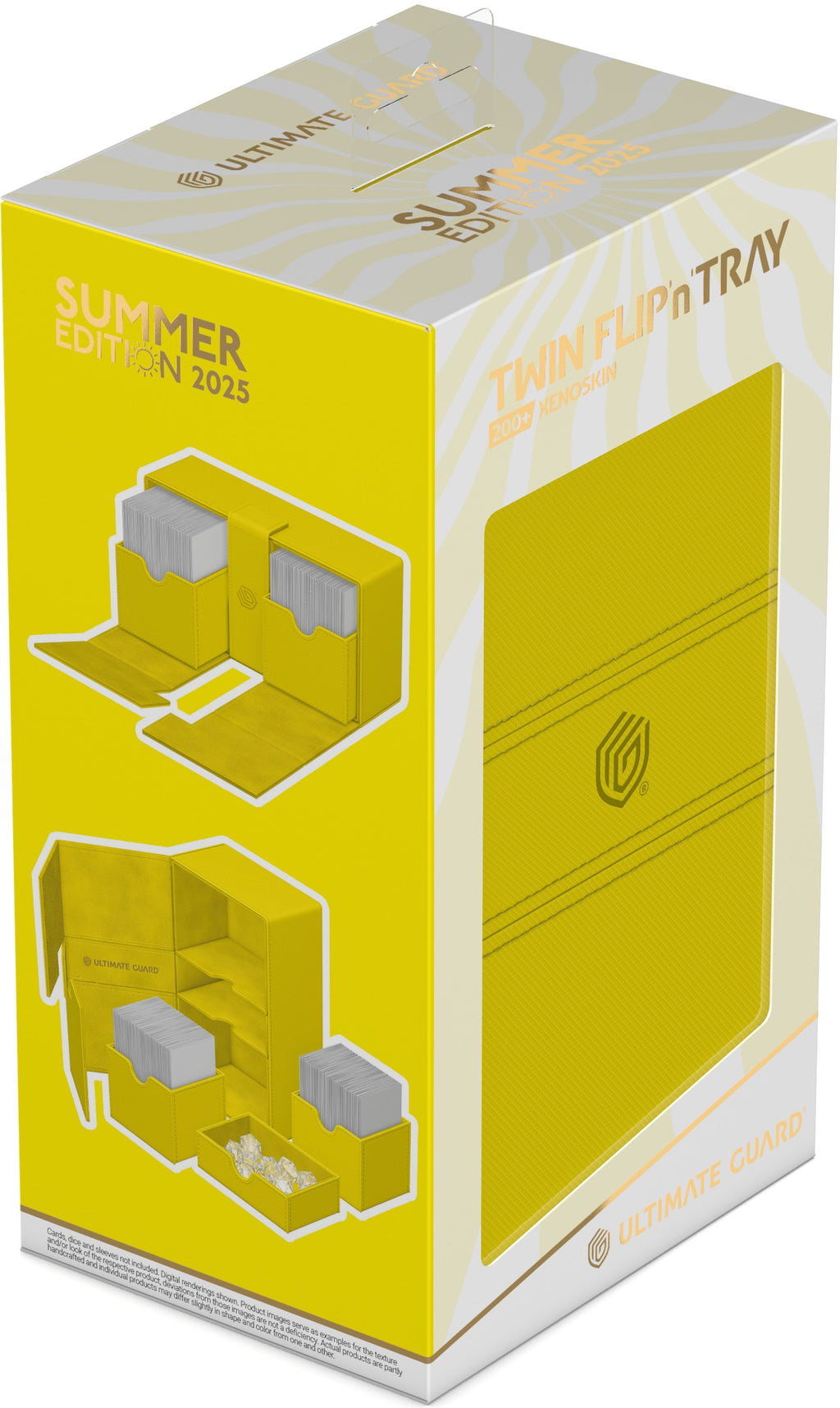 Catch the ultimate summer vibes with Ultimate Guard’s Twin Flip’n’Tray 200+ Xenoskin from the limited “Summer Edition 2025” in four vibrant new colors: Dandelion, Peach, Lime and Lagoon! The Twin Flip’n’Tray deck box features two independently accessible trays with quality microfiber inner lining for 100 double-sleeved or 120 single-sleeved cards each. Additionally, the resistant Xenoskin box has a removable accessory tray and a strong magnetic closure to keep the Magic: The Gathering, Pokémon, Lorcana, One Piece or Yu-Gi-Oh! cards inside safe.