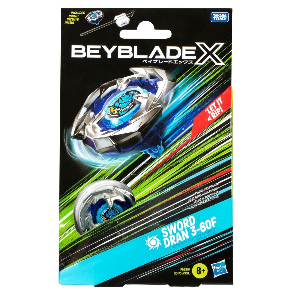 Experience the thrill of the next generation of Beyblade stadiums, launchers and tops: Beyblade X with the Beyblade X Sword Dran 3-60F Starter Pack which includes 1 right-spinning Attack Type top and launcher (Beystadium required, sold separately). Launch right into battle or reconfigure the interchangeable blade, ratchet, and bit of this Starter Pack with those of other Beyblade X tops (sold separately) to create your own unsurpassable Bey. Beyblade X features the X-Celerator Gear System innovation to level-up your game. When the gear of a Beyblade X top engages the rail of the Beystadium arena, it can super-accelerate into an Xtreme Dash rocketing it around the stadium for crushing collisions and epic bursts. Bladers launch their tops into fierce clashes against their opponent’s scoring points with each confrontation – first to score 4 points wins. Hasbro Beyblade toys with authentic Takara Tomy die-cast metal tops make great kids gifts for boys and girls ages 8 and up.