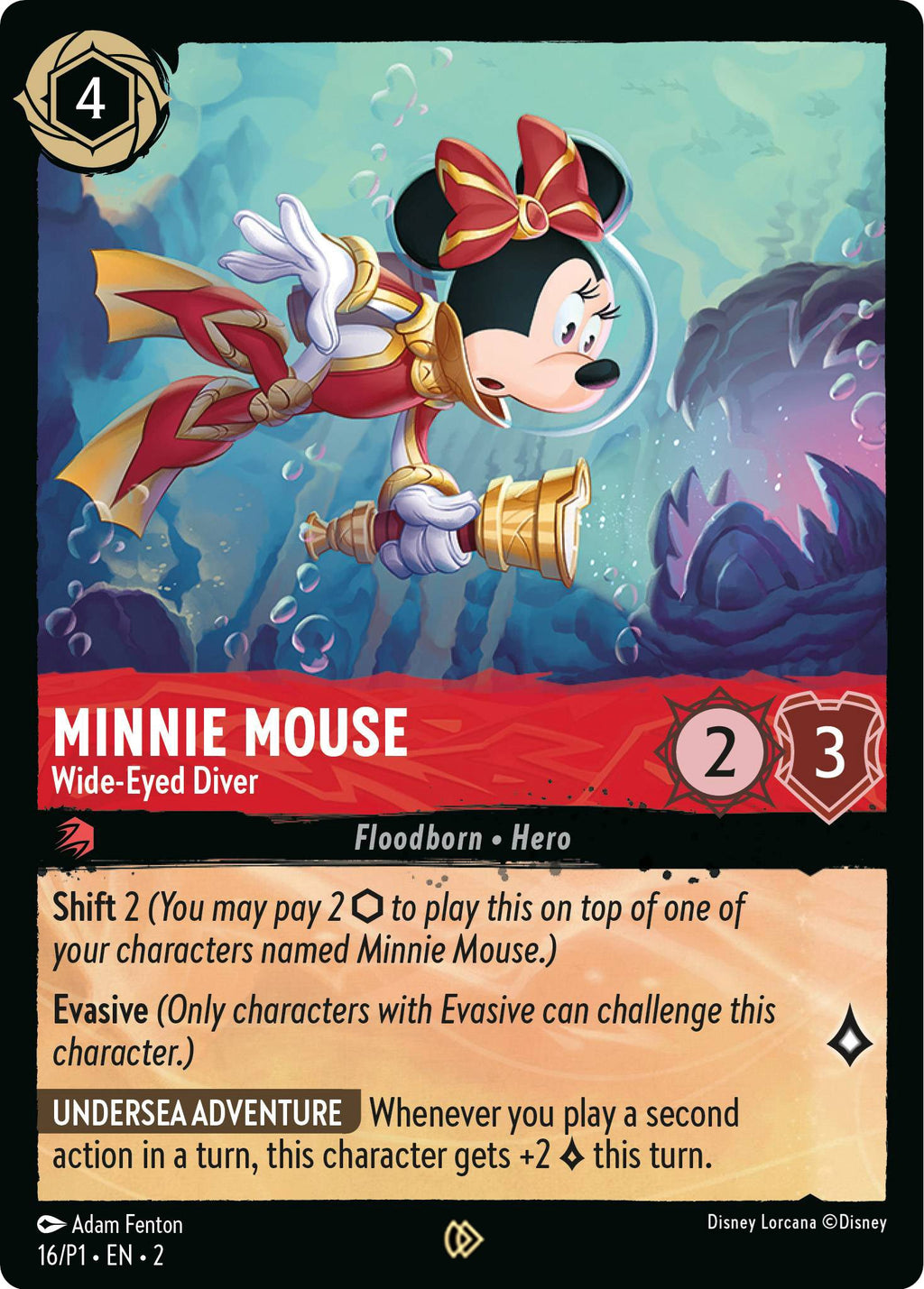 [Undersea Adventure] Whenever you play a second action in a turn, this character gets +2 Lore this turn.
