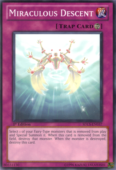 Select 1 of your Fairy-Type monsters that is removed from play and Special Summon it. When this card is removed from the field, destroy that monster. When the monster is destroyed, destroy this card.