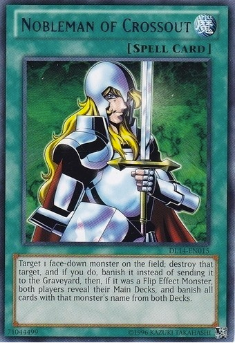 Target 1 face-down monster on the field; destroy that target, and if you do, banish it instead of sending it to the Graveyard, then, if it was a Flip Effect Monster, both players reveal their Main Decks, and banish all cards with that monster's name from both Decks.