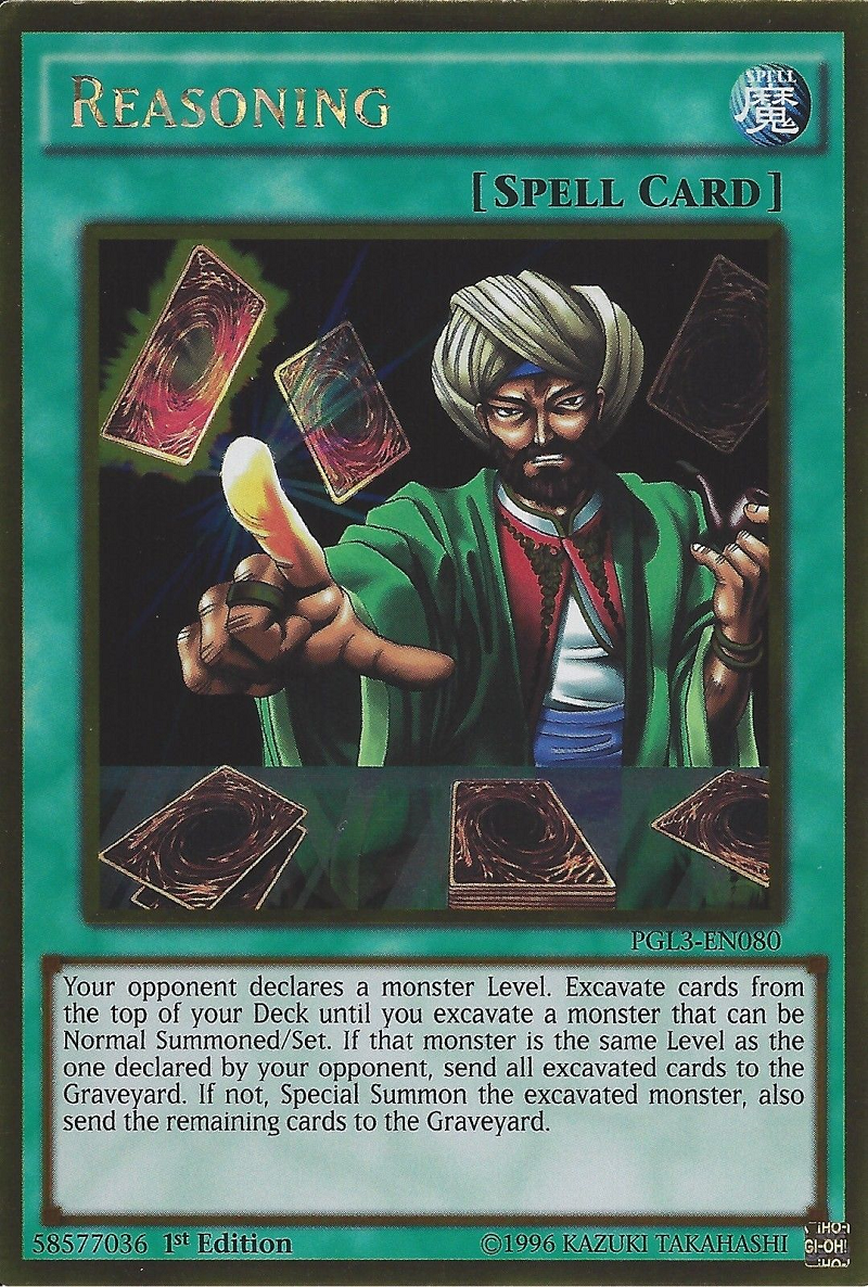 Your opponent declares a monster Level. Excavate cards from the top of your Deck until you excavate a monster that can be Normal Summoned/Set. If that monster is the same Level as the one declared by your opponent, send all excavated cards to the Graveyard. If not, Special Summon the excavated monster, also send the remaining cards to the Graveyard.