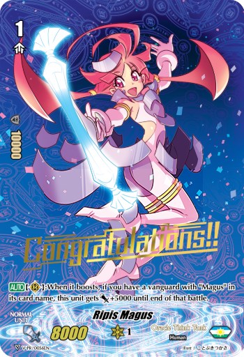 [AUTO](RC):When it boosts, if you have a vanguard with "Magus" in its card name, this unit gets [Power]+5000 until end of that battle.