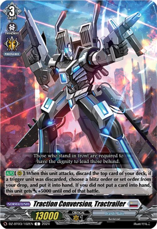 [AUTO](RC):When this unit attacks, discard the top card of your deck, if a trigger unit was discarded, choose a blitz order or set order from your drop, and put it into hand. If you did not put a card into hand, this unit gets [Power] +5000 until end of that battle.
