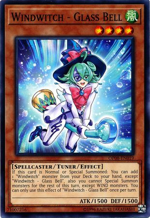 If this card is Normal or Special Summoned: You can add 1 "Windwitch" monster from your Deck to your hand, except "Windwitch - Glass Bell", also you cannot Special Summon monsters for the rest of this turn, except WIND monsters. You can only use this effect of "Windwitch - Glass Bell" once per turn.