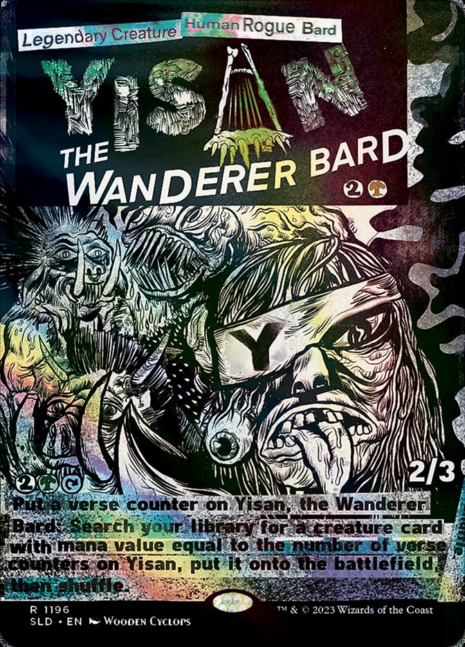 {2}{G}, {T}, Put a verse counter on Yisan, the Wanderer Bard: Search your library for a creature card with mana value equal to the number of verse counters on Yisan, put it onto the battlefield, then shuffle.